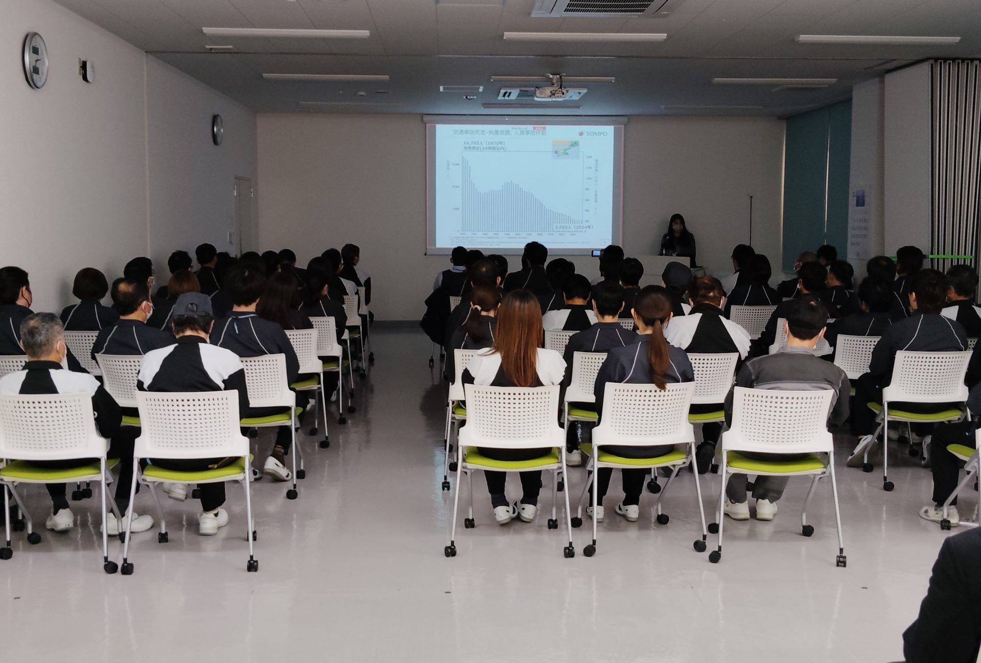 2025年12月17日㈬、イーグル工業株式会社 つくば事業場様にて「交通安全講習会」を開催し、約160名の社員さまに聴講いただきました。 イーグル工業株式会社 つくば事業場様で「自動車保険見積りキャンペーン」を実施した同日に「交通安全講習会」を行いました。3会場をTeamsで繋ぎ約160名に参加いただき約1時間『交差点での事故防止』を中心に学びました。
